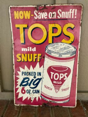 Vintage, TOPS Mild Snuff, Big 6oz Can, Original Tin Sign