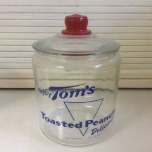 Vintage Tom’s Peanuts Store Jar. Excellent Condition. In 1925 Tom Huston Founded Tom's Roasted Peanuts, And Began Selling His Peanuts For A Nickel A Bag. Within Two Years , Tom's Peanuts Were Being Sold Around The Country, Generating $4 Million In Sales.