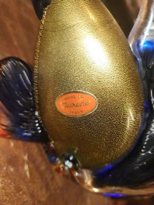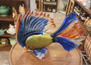 Beautiful Red, White, and Blue Murano Fish. Measures 6.5 inches tall and 10 inches long. Small defects pictured. Will calculate cost for shipping with purchase.