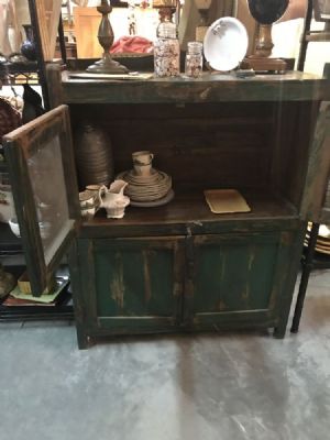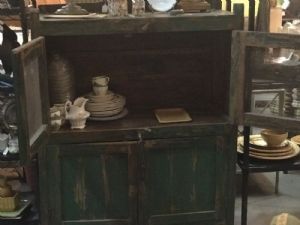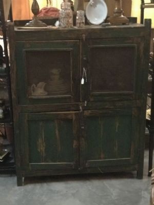 Antique chippy green pie safe measures 40"wx18"dx51"h. Call the store to purchase (205) 540-1868.