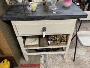 Nice color scheme and vintage handle. Great for storage and displaying items. Additional photos available upon request.