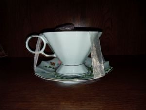 Adorable blue/green floral tea cup and saucer! Great condition.