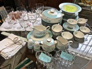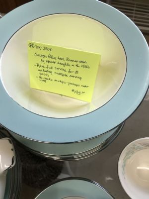 Beautiful set of Homer Laughlin dinnerware from the 1950s. Savron Blue Lace. Rare full service for 8, including multiple serving pieces. No cracks or chips - perhaps never used.