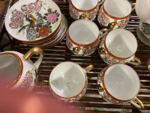 Japan tea set lithopane cups plus bamboo tray