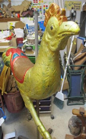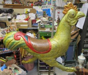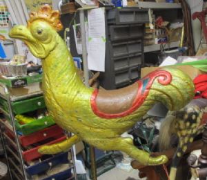 Paint ...Rooster is in Park Paint, many layers of old paint and very yellowed varnish for a great old look.