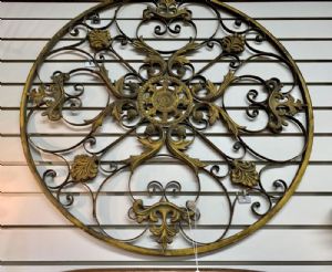 Vintage Round Heavy Gilded Metal Scrolled Wall Hanging