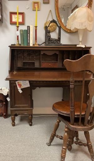This desk is in wonderful condition. It measures 42"H x 40"W x 15"D. It can be seen and purchased through Marietta Antique Mall - 1427 Roswell Road - Marietta, GA 30062. Ask for directions to Booth 1000 Fairground - Dealer #151 - Item #7247