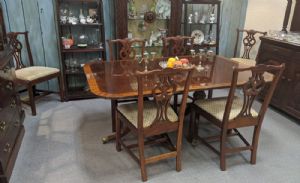 Store Home » Dining Sets » SOLD: Vintage Henredon Dining Table with 6 Chippendale Chairs