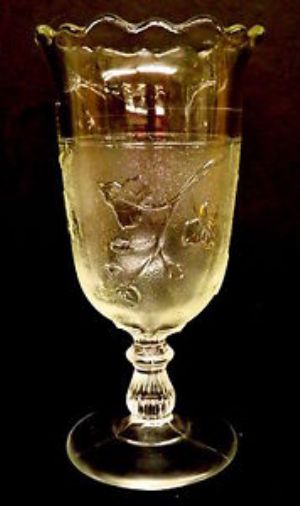 Here is a lovely "Rose in Snow" pattern glass celery vase produced by Cooperative Glass around 1880. Measuring a little over 8" in height, it is in perfect condition.