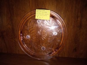 Pink Jeanette Glass Footed Cake Plate