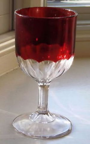 Ruby Stained Goblet, "Plain Miotin, Red Top" McKee c1880