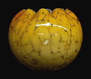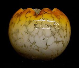 Here is a gorgeous Victorian blown peachy orange spatter and mica spangle finger bowl dating to about 1870. Measuring a little over 3 1/2" tall and 4 1/2" across, it has an unfinished pontil and is in perfect condition.