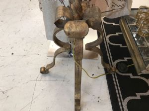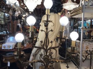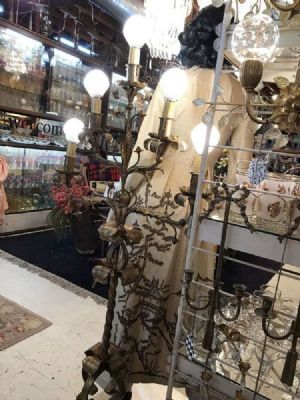 Art Deco Italian Floor Lamp. Gold tone Gilt Metal with 5 Arm Lighting. Each light can handle up to Standard or LED 100 Watt bulb. Shown with vintage beaded bulb covers, sold separately,, all new wiring and has a floor on/off switch. The Vintage beaded bulb covers fit standard bulb size and are 88.00 each, Floor Lamp 485.00.