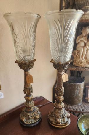 Set of 2 Glass and Gold Lamps