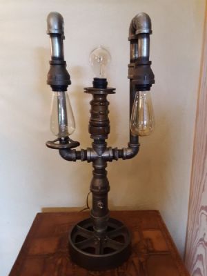 Steam punk table lamp with brass fire department nozzel..very heavy..hand built..attention to detail ..