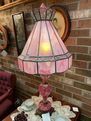 Beautiful vintage paper weight lamp. Marked Joe Rice with signed Bemis Remington glass shade. Rare.