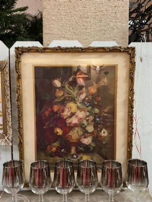 Antique Gold Guild Flower Print - Double Matted. 18x24. Credit cards/checks accepted. Texas Trails Antiques and Marketplace, Smithville, TX. Call or text 512-520-7352.