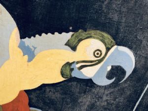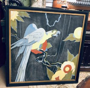 1920's Oil on Board Art Deco Parrot. 44.5 x 43.75 Featured in Birmingham Home and Garden Magazine