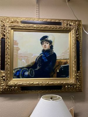 Victorian painting- reproduction of famous painting. A woman in a blue velvet dress- framed in a gold guild frame. Measures 24" X 24". Checks/credit card accepted. Layaway available. Contact Texas Trails for further information on this item: Call 512-520-7352