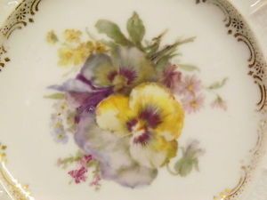 Here is a beautiful little signed Rosenthal plate featuring handpainted pansies and other florals. Measuring 7 1/2" in diameter, it has some minor wear on the shoulder of the well (likely from stacking) but it is otherwise bright, clean and perfect.