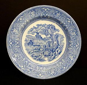 Store Home » Porcelain » Blue & White Staffordshire Transferware Plate, "Italy" by Edge Malkin c1870
