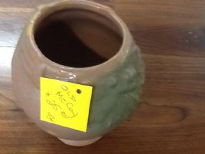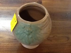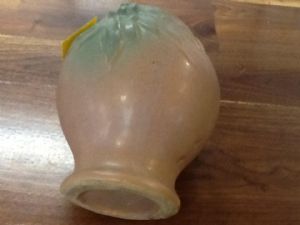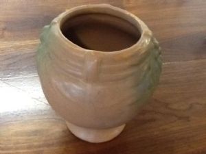 This Old McCoy vase is in great condition. It is tan with a green flower cluster on both sides.