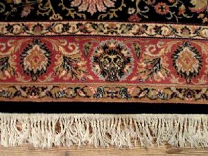 This machine made Room Size Oriental Rug is a beauty! Made of wool, the colors are wheat, salmon and a soft blue on a lovely navy background. There is fringe on each end, and it is all in tact. The rug has been cleaned, so the colors are brilliant and the fabric is fresh. It has no stains or odors and no moth infestations. A rug can put a finishing touch on any room, and this would be a fitting choice for your home. Contact BARN ON 26 today to secure this rug.