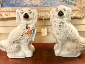 15" Staffordshire dogs. The largest pair we've ever seen! Sale priced at $450 for the pair.