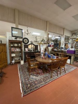 Octagon maple wood table and 7 spindle back chairs. Excellent shape.