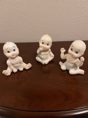 3 Vintage Lefton Kewpie Porcelain Doll Figurines with Diapers 3" Tall