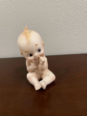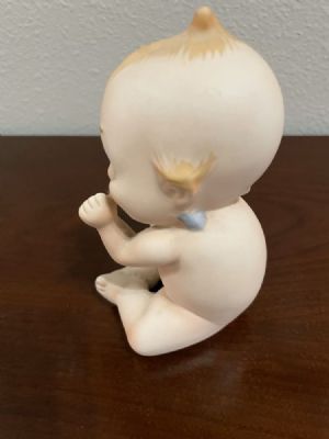 Lefton KW228 Vintage Kewpie Sucking Thumb Blue Wings 4 1/2" Tall