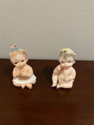 Vintage Napco Baby Figurine C4909L/C4900L, Piano Baby Girl and Boy, 1960