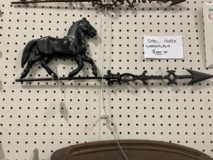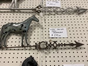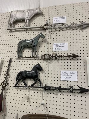 The cow and horse weathervanes are priced from $135.00-$275.00 each. The horses are 23" long while the cow is about 32" long.