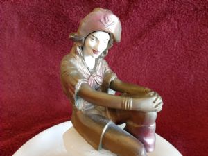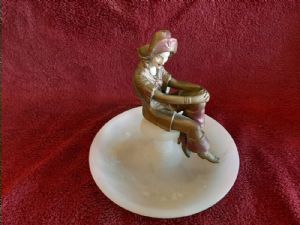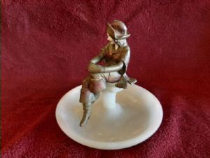 Pure Art Deco is exhibited in the “Pirate Lady” card holder. Retains 95+ % of the original polychrome coloration which is exquisite. Great entrance piece for card holder or could be used in the vanity area for rings, watches, etc. The diameter of the base is: 8” and the overall height is 7”. She is definitely a lady pirate with attitude (see photos). For payment we will accept personal checks, money orders, certified check or, cashiers’ check. Personal checks require 8 business days to clear the bank, all other forms of payment receive same day as received shipment. Thanks for looking and if you have any questions give us a call @ 931-303-6739 or email us at windowshop49@yahoo.com