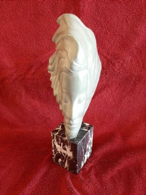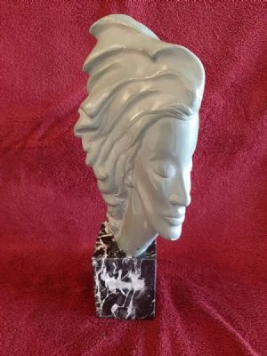 The absolute epitome of high society Art Deco styling. The bust exhibits a very flowing profile but when brought to full frontal view it becomes stylishly thin. Could be classified into the Mid Century Modern category but appears to be older than that. The detailed work of art is mounted on solid Italian marble and is extremely heavy. What a statement for your entrance, den, living room, etc. The overall height is an impressive 16”. For payment we will accept personal checks, money orders, certified check or, cashiers’ check. Personal checks require 8 business days to clear the bank, all other forms of payment receive same day as received shipment. Thanks for looking and if you have any questions give us a call @ 931-303-6739 or email us at windowshop49@yahoo.com