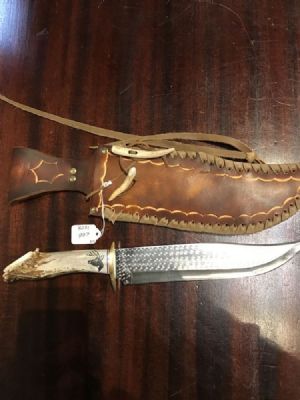 LARGE ANTLER HANDLE NAVAJO KNIFE PURCHASED IN TUCSON, ARIZONA FROM NATIVE AMERICAN CRAFTSMEN