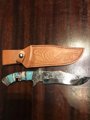 LARGE NAVAJO TURQUOISE KNIFE IN SHEAF PURCHASED IN TUCSON, ARIZONA FROM NATIVE AMERICAN CRAFTSMEN